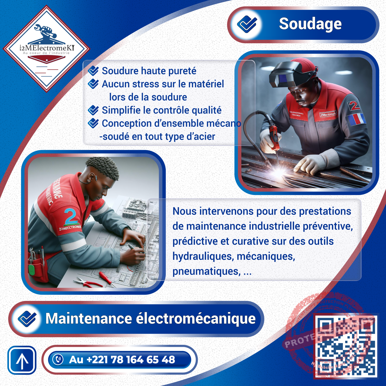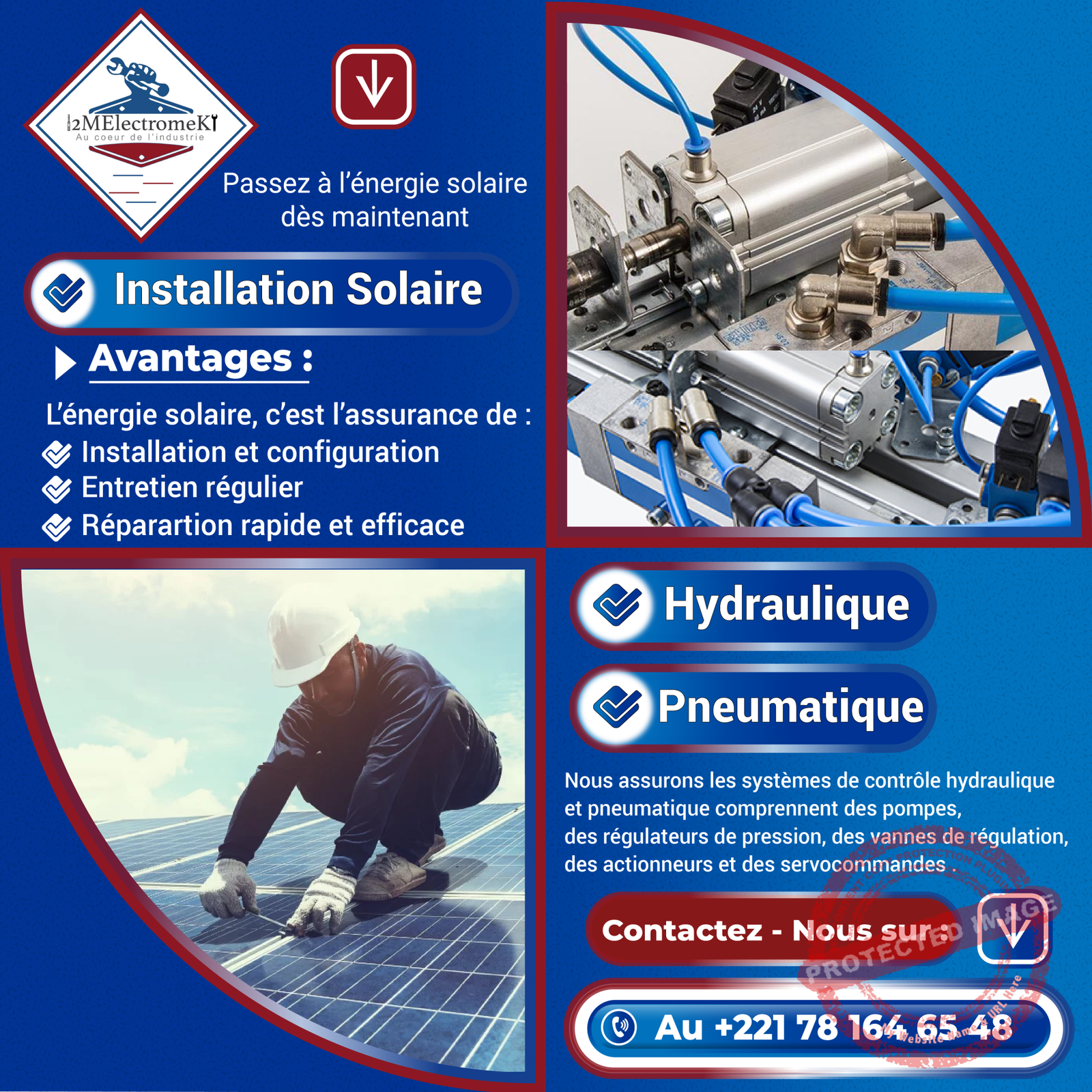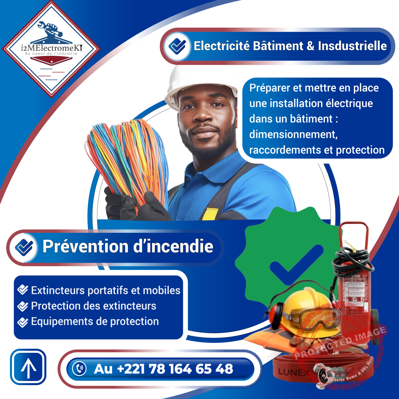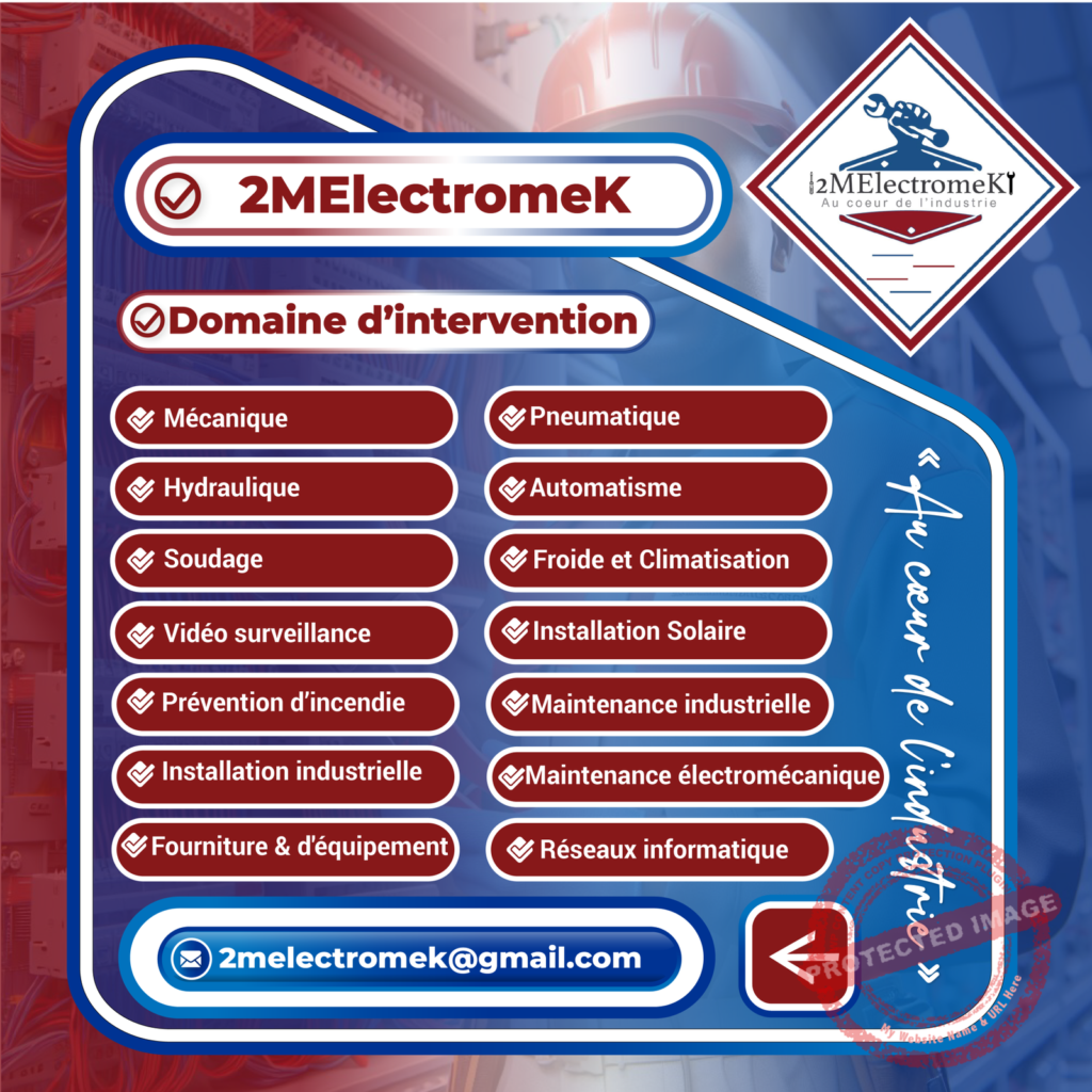 - Merci à vous, nous vous avons présenté notre entreprise 2MElectromeK. Contactez-nous sur le numéro en bas d’écran au 781646548