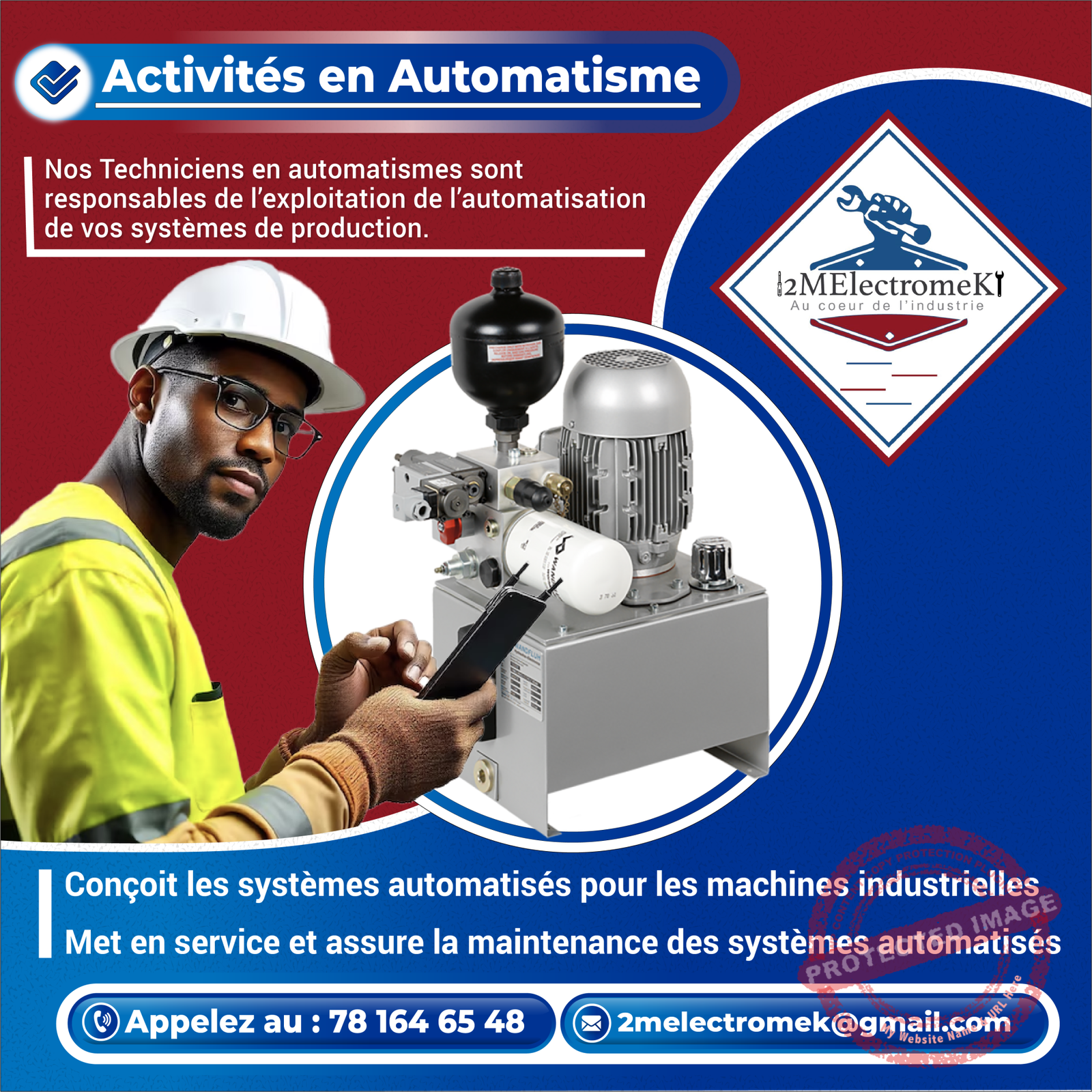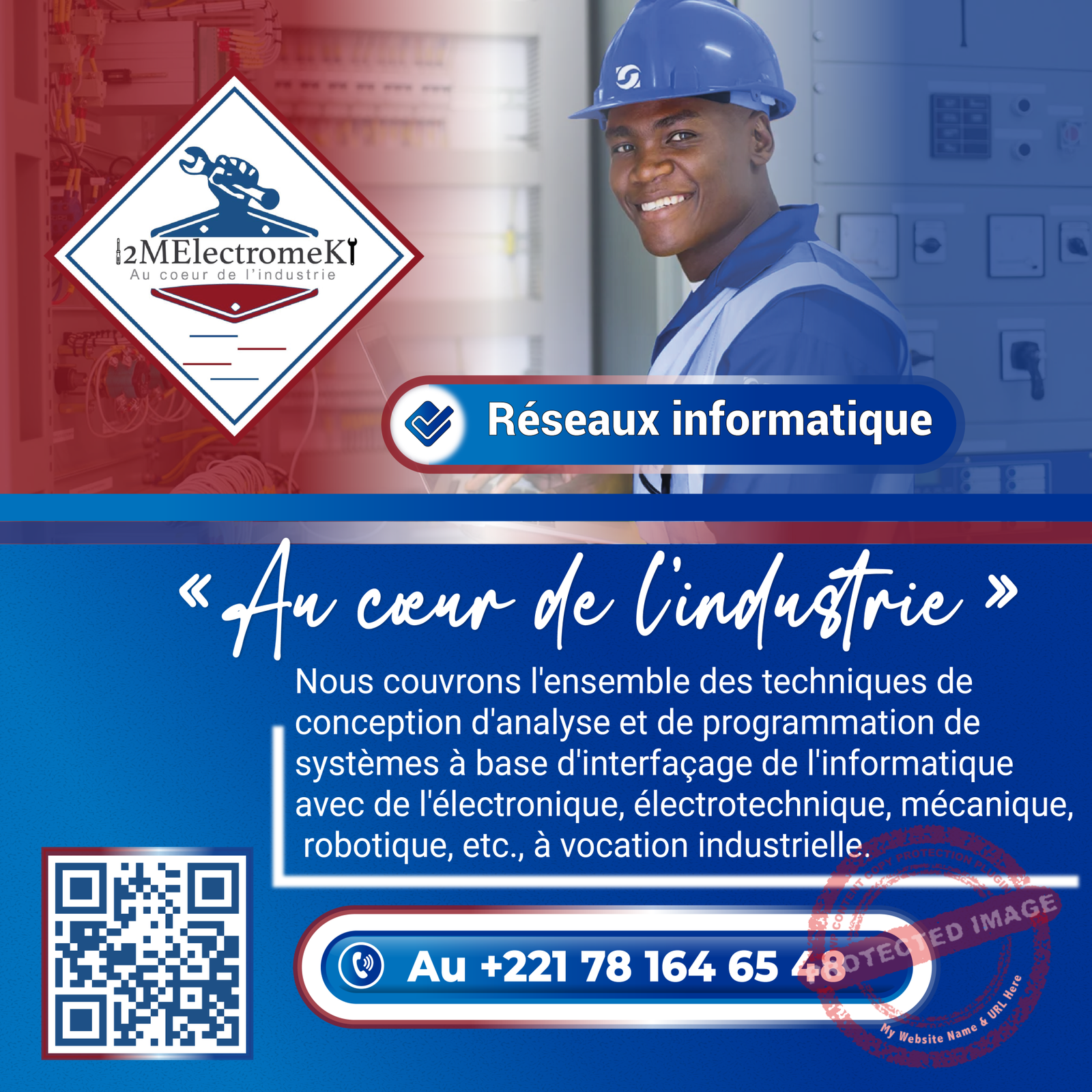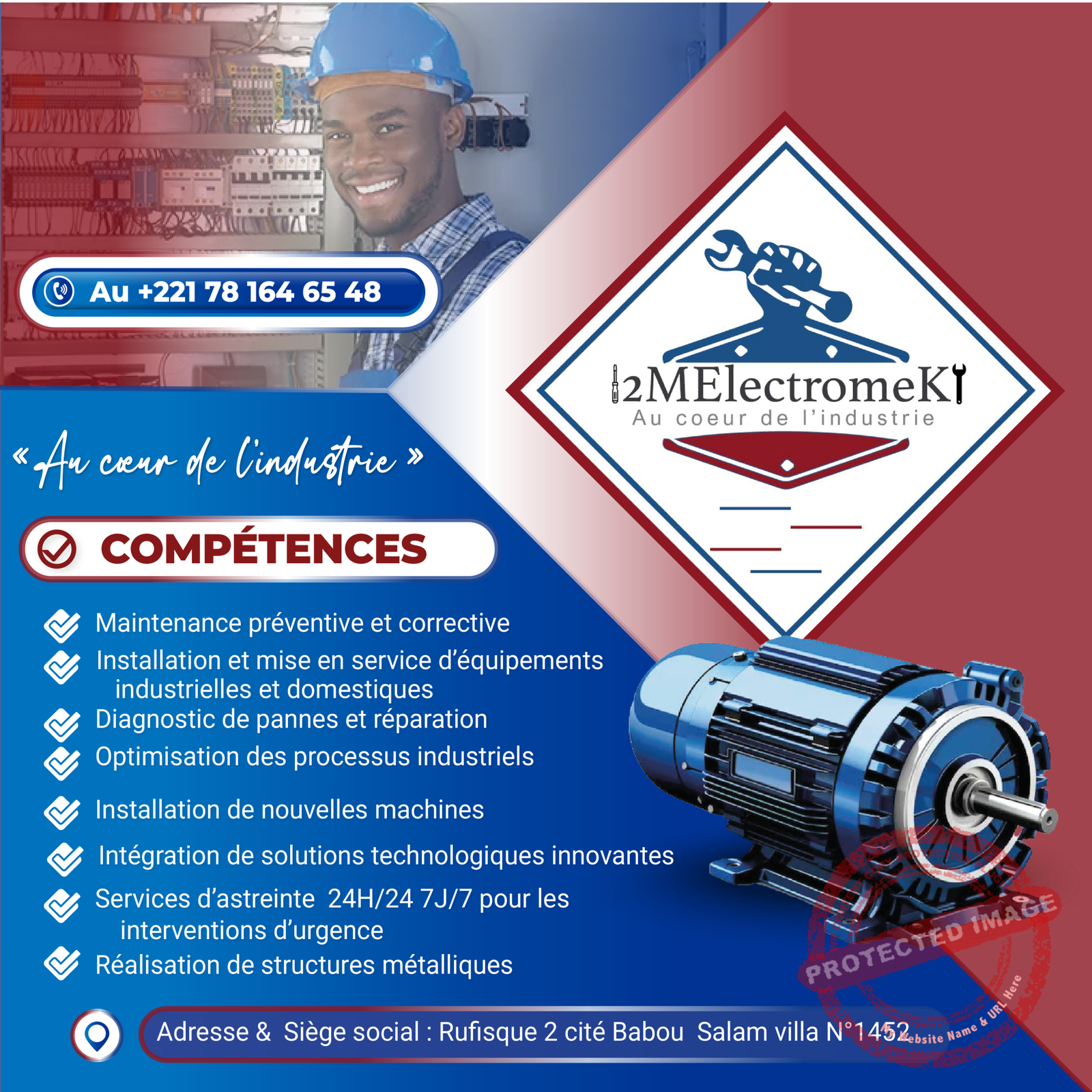 - Merci à vous, nous vous avons présenté notre entreprise 2MElectromeK. Contactez-nous sur le numéro en bas d’écran au 781646548